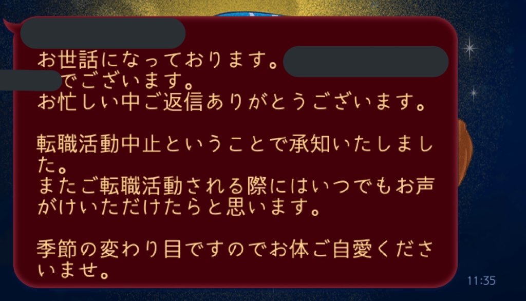 日頃より転職活動のサポートをしていただき、誠にありがとうございます。